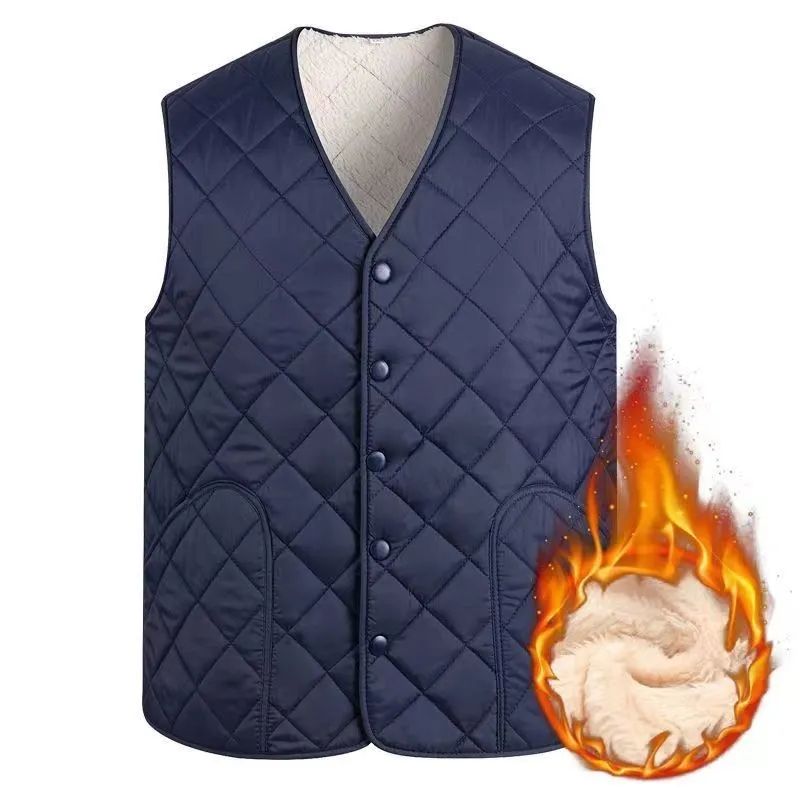 冬季新款中老年男士加厚羽绒棉休闲背心爸爸装无领加绒马甲内外穿 XL100-115斤 蓝色