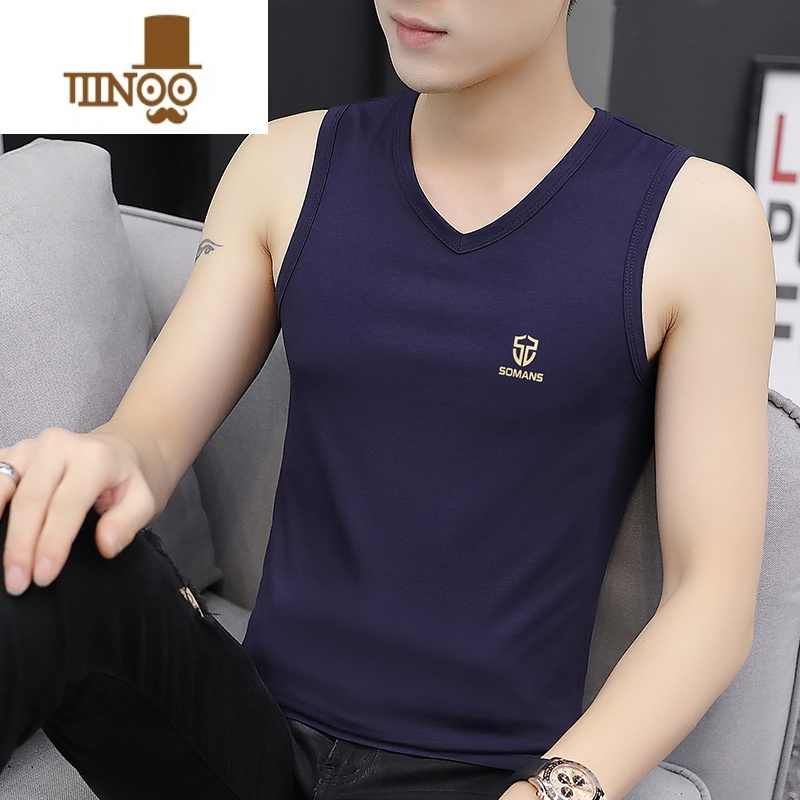 YANXU2022莫代尔男士V领背心宽肩坎肩无袖t恤冰丝内穿0打 2XL135-150斤 200011-藏青