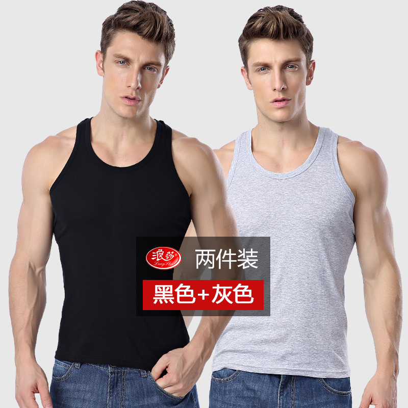 2件装 浪莎男士背心纯棉透气跨栏打底内衣全棉汗衫宽松运动背心男 180(XXL) 黑+灰/两件装/宽松