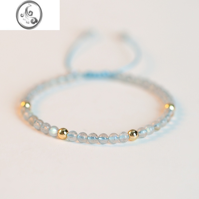 JiMi绿色水草玛瑙手链女夏季水晶ins小众设计闺蜜珠手工编织幸运 灰月光款-3mm