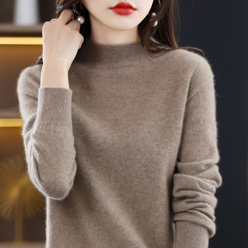鄂尔多斯羊绒衫女半高领毛衣女宽松外穿短款春秋2024年春装新款百搭加厚针织打底衫秋冬针织上衣服恒源祥羊毛衫毛衣打底衫 南瓜色 M