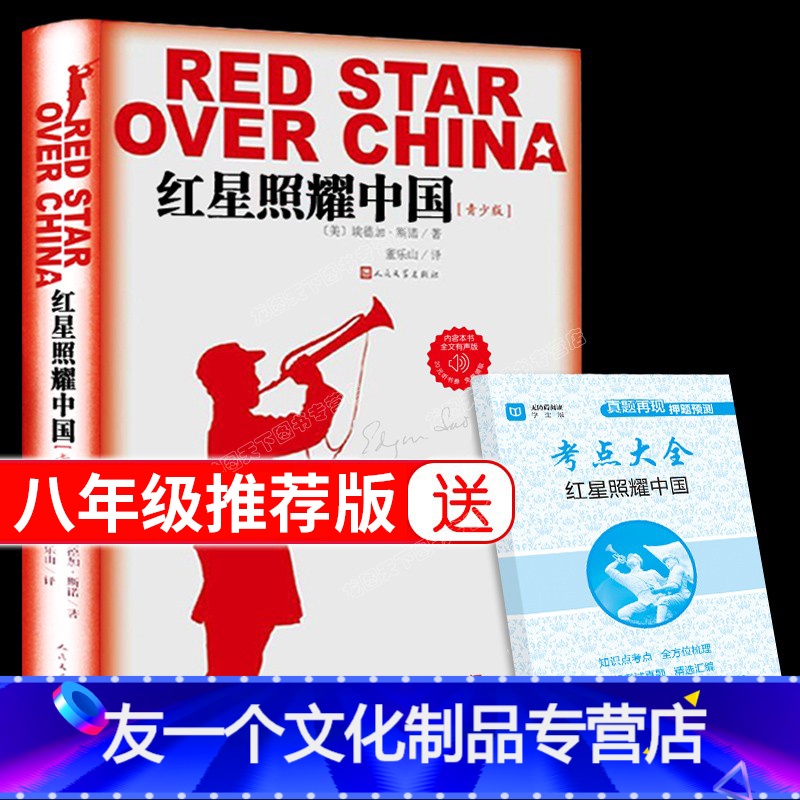 【友一个正版】红星照耀中国西行漫记必读原著初中老师初二八年级上册课外阅读书籍人民文学出版社青少年八上课外书名著书目红国