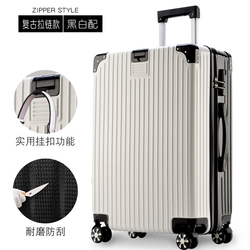 行李箱旅行箱小型铝框20拉杆箱万向轮定制24男女学生密码箱包 707复古拉链白配黑色 22寸
