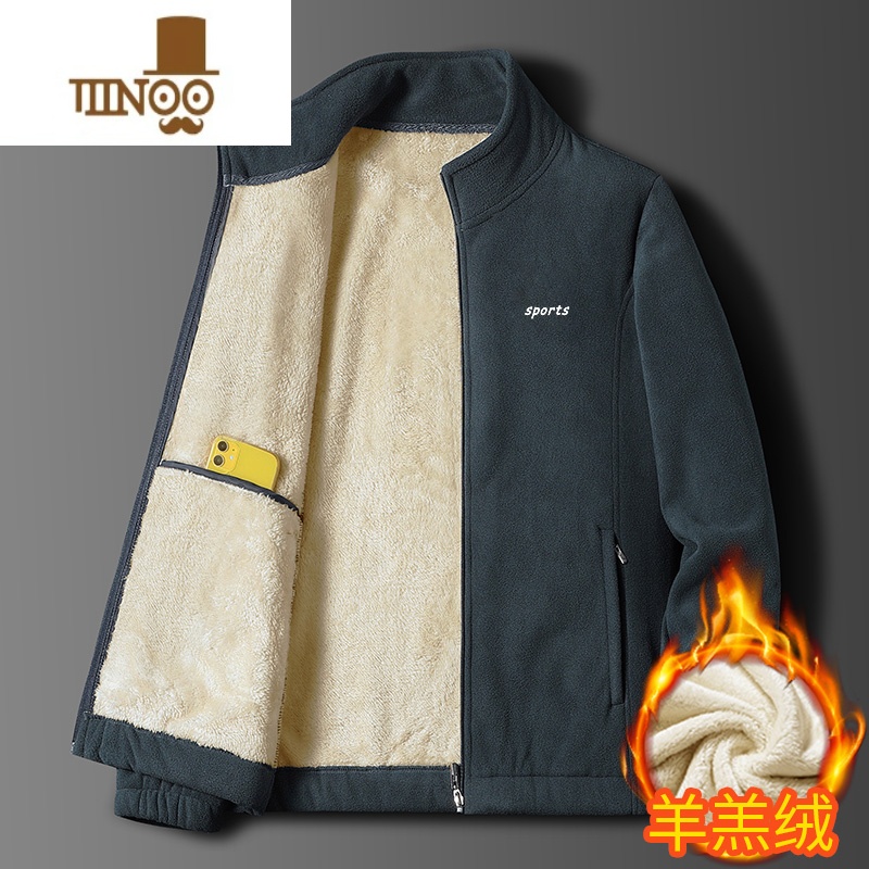 YANXU羔绒外套捉绒衣新款加绒加厚御寒保暖夹克男士摇粒绒男男 5XL180-195斤 加绒LZH-922深灰