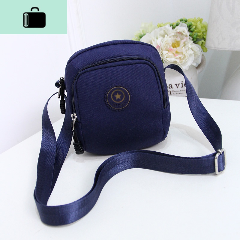 韩版时尚防水尼龙女包迷你小包包单肩斜挎包帆布潮手机零钱包女包NEWLAKE 竖版深蓝色