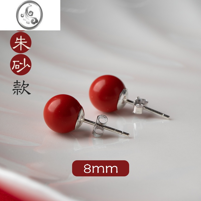 JiMi银耳钉银银小豆豆朱砂耳钉养耳洞女红色耳坠耳饰银925小众免 红朱砂-8mm款