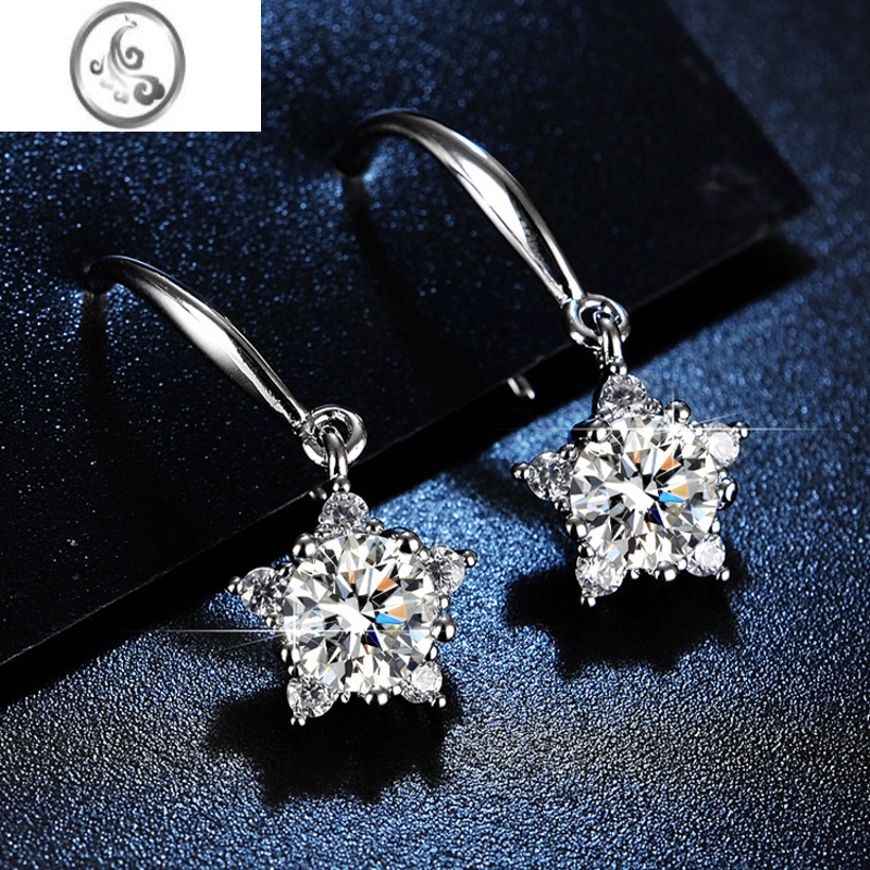 JiMi莫桑钻耳钉女925银银1克拉宝石仿真雪花耳环轻奢六爪简约耳饰礼物 星星耳环一克拉
