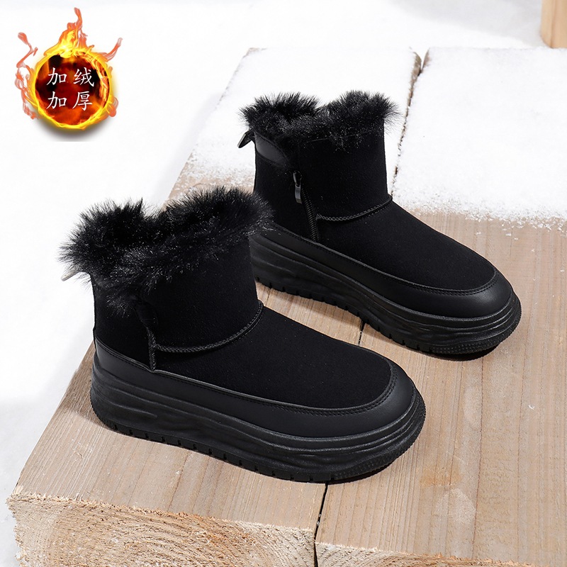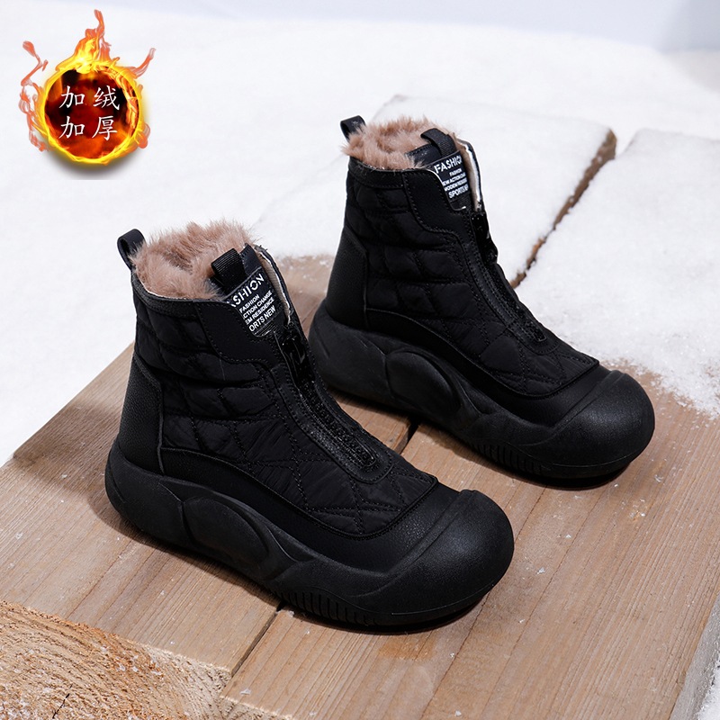 厚底棉鞋女冬季加绒加厚雪地靴新款休闲高帮面包鞋板鞋女_2 黑色 38