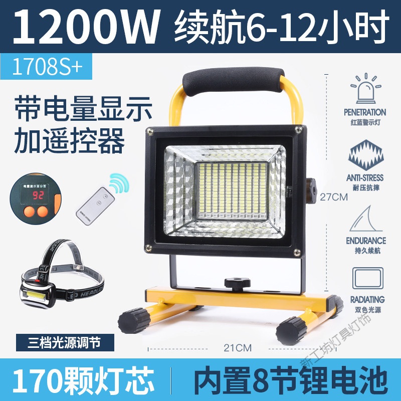 苏宁放心购强光充电灯户外工地用节能照明灯led家用摆摊夜市移动手提应急灯 【1200W170珠6-12小时】八锂电池带电显加遥控器