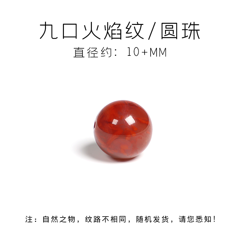原矿川料凉山九口火焰纹南红玛瑙散珠隔珠圆珠手链半成品配饰搭配 九口火焰纹圆珠约10+mm一颗