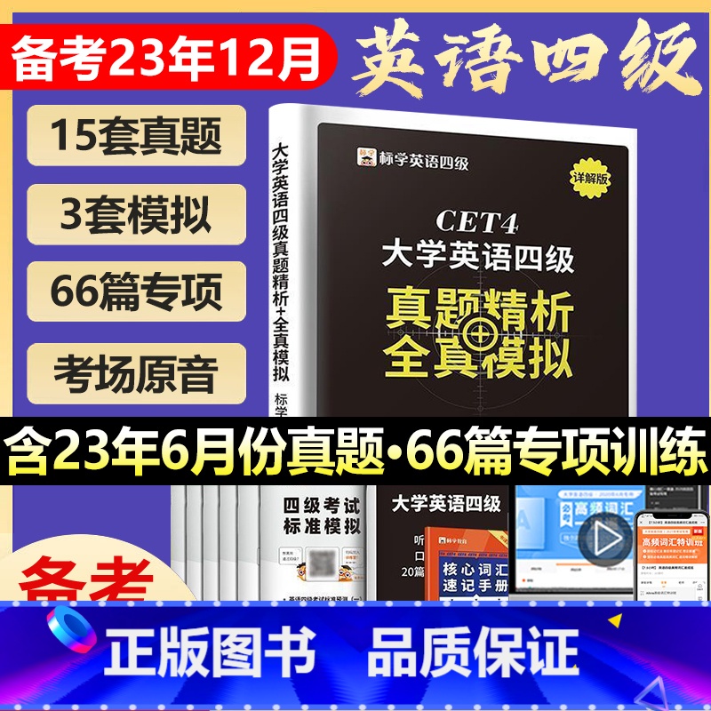 【正版】英语四级考试大学生英语真题2023年复习资料历年试卷模拟卷子套卷题单词本词汇书大学四六级4级cet作文听力阅读考