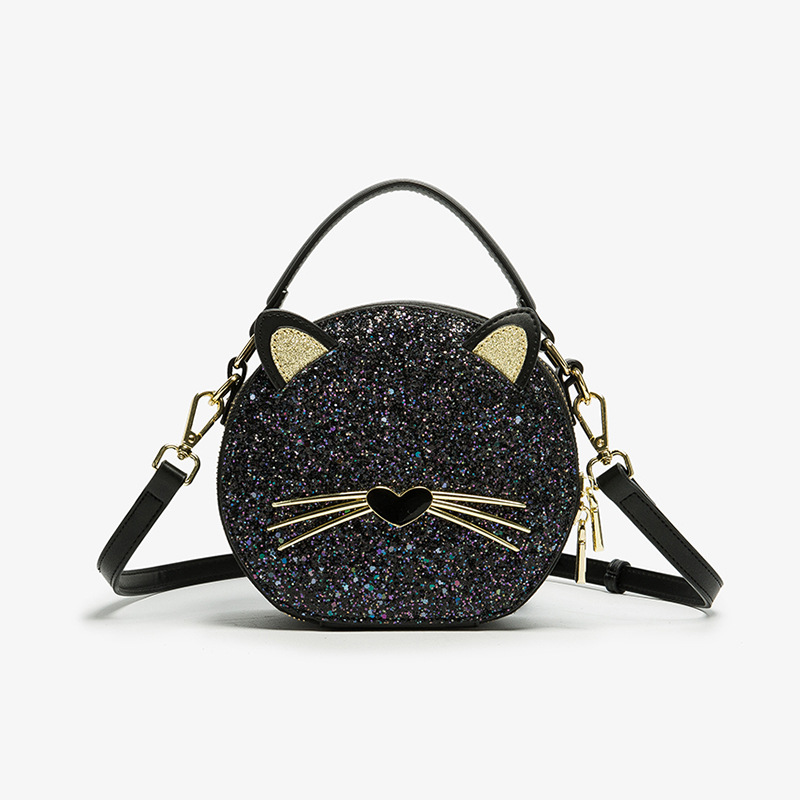 Ceba2023新款时尚潮流猫咪设计感亮片质感休闲单肩斜挎手提包 黑色