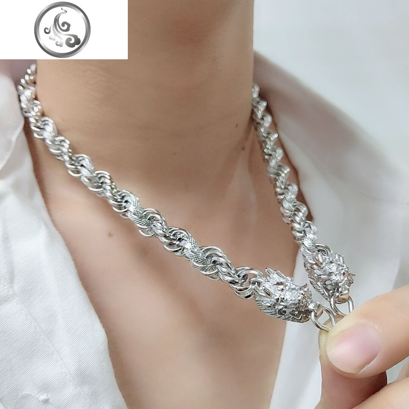 霸气粗款纯银项链男纯银男双龙头吊坠大银链子999潮人嘻哈锁骨链 B款项链粗9毫米总长65厘米