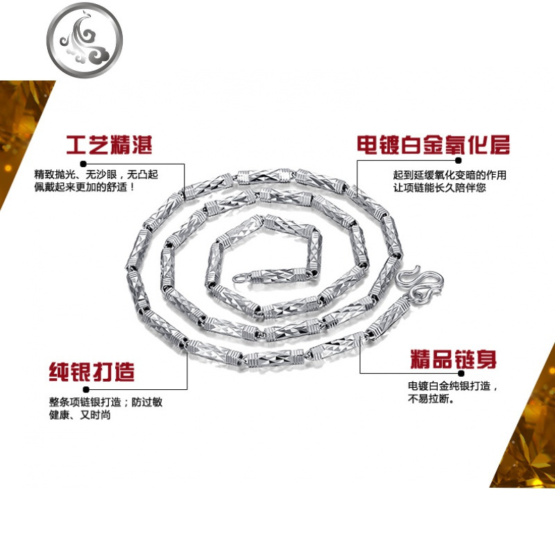 韩版990纯银男士项链纯银六角银链子时尚男生粗款银项链男生吊坠 空心6毫米宽项链长45厘米