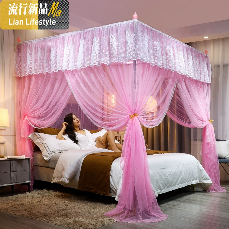 夏季蕾丝公主风三开宫廷蚊帐单人学生宿舍双人家用1.5米1.8米床三维工匠 1.8m(6英尺)床 粉色