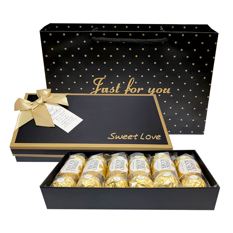 费列罗巧克力榛果威化18粒混合多口味礼盒装送礼物(配礼袋) 黑色盒(费列罗18颗,6条T3) 委托装好发(巧克力装入盒子)