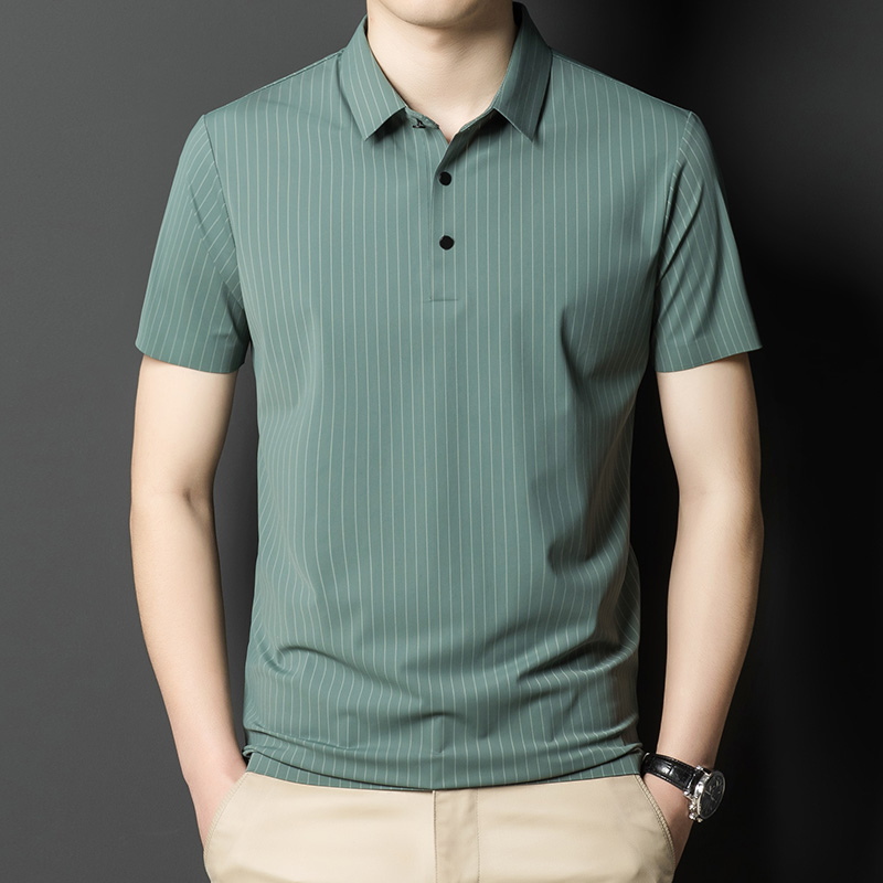 夏季翻领无痕短袖T恤男士竖条纹休闲polo衫男装潮流薄款冰丝半袖 180/XL 绿色