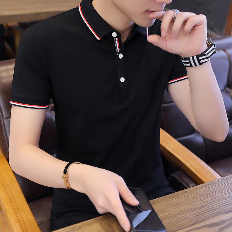 JPDUN吉普盾新款夏装男士翻领polo衫夏季短袖T恤男丅纯棉带领合体型上衣 L 黑色