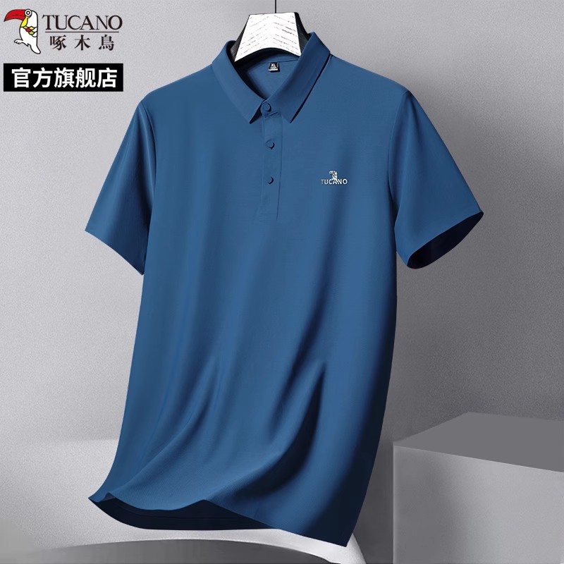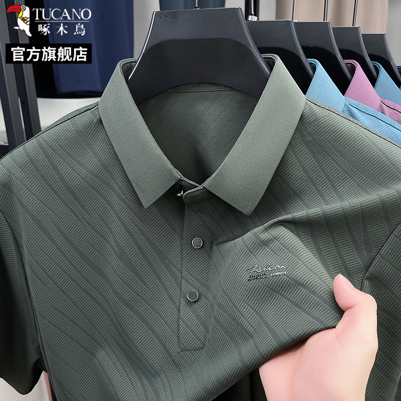啄木鸟夏季2025新款薄款男士短袖t恤冰丝大码爸爸翻领POLO衫男装C 52适合135-155斤 土黄
