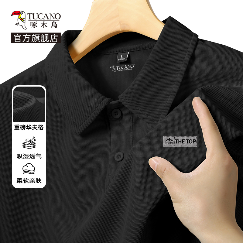啄木鸟男士polo衫短袖夏季2025新款华夫格带领t恤潮牌宽松半截袖Y