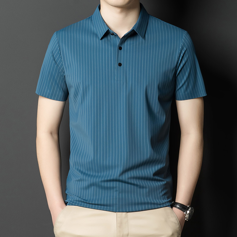 夏季翻领无痕短袖T恤男士竖条纹休闲polo衫男装潮流薄款冰丝半袖 185/XXL 兰色