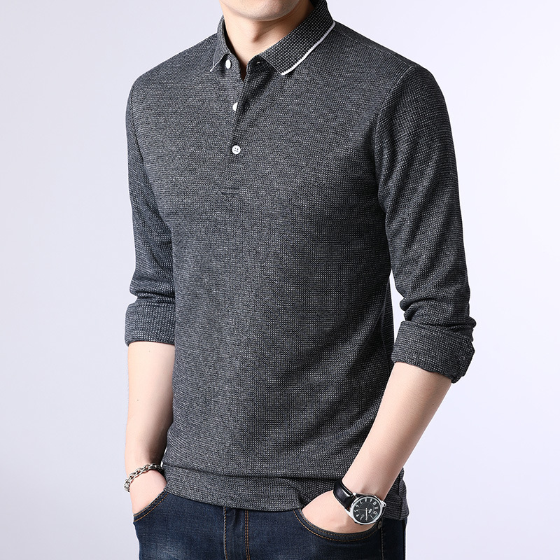 恒源祥品质棉长袖t恤男2022秋季新款简约体恤男打底衫男士polo衫 M/170建议100-120斤 中灰