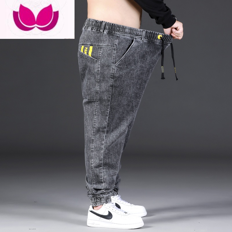 七斓胖人裤子牛仔裤男加肥加大运动裤新款肥佬大码松紧束脚款潮 6XL260-280斤穿 9004款烟灰色