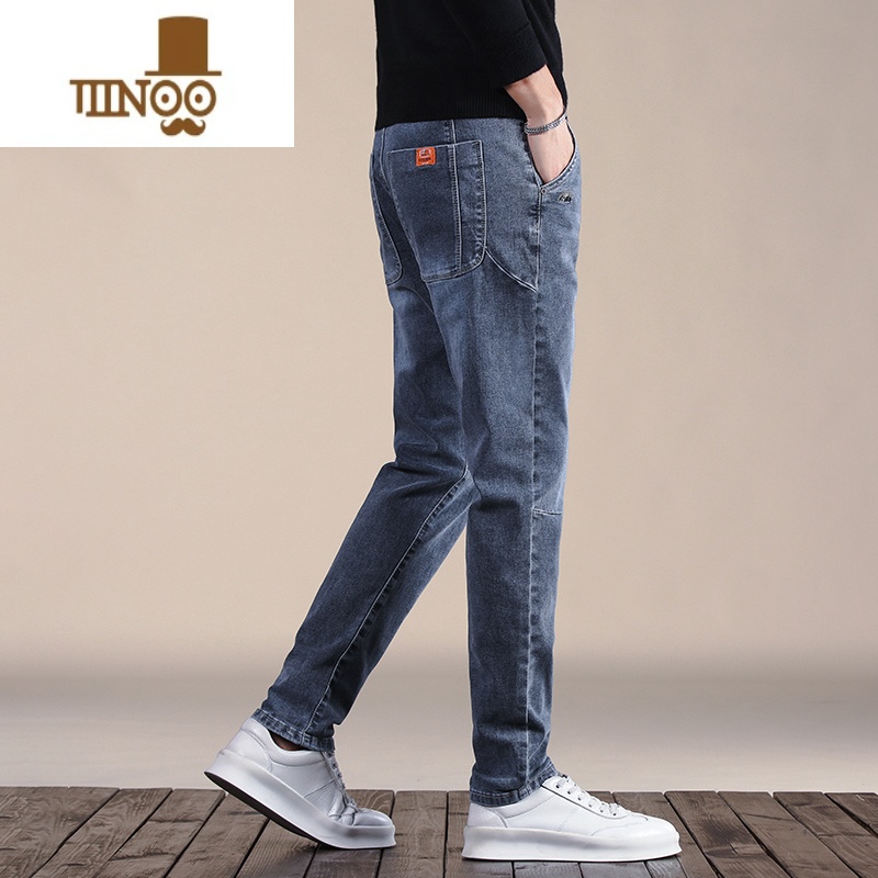 唐狮 男式 男腰里衬布修身小脚牛仔裤112212083495(中牛仔蓝31)