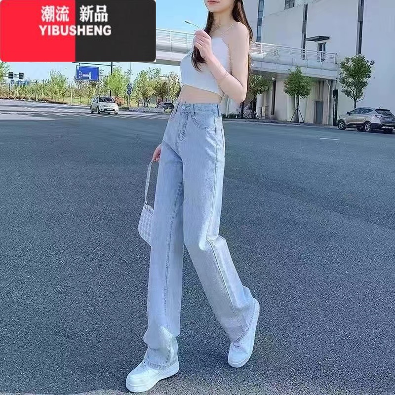 YIBUSHENG复古阔腿牛仔裤女直筒宽松新款2023高腰显瘦拖地长裤长 2XL125-140斤 601蓝色常规阔腿裤