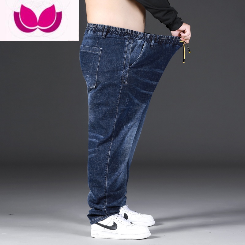 七斓胖人裤子牛仔裤男加肥加大运动裤新款肥佬大码松紧束脚款潮 3XL200-220斤穿 9004款深蓝色