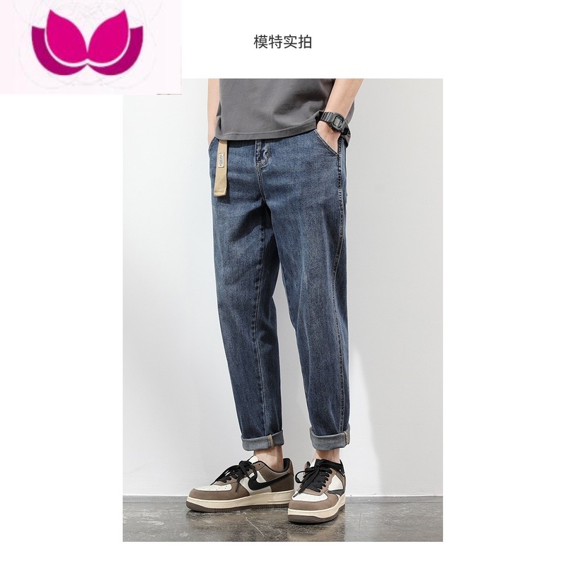 七斓2023年新款牛仔裤男士宽松直筒休闲裤长裤款潮流百搭九分裤子 29 深蓝色偏浅色