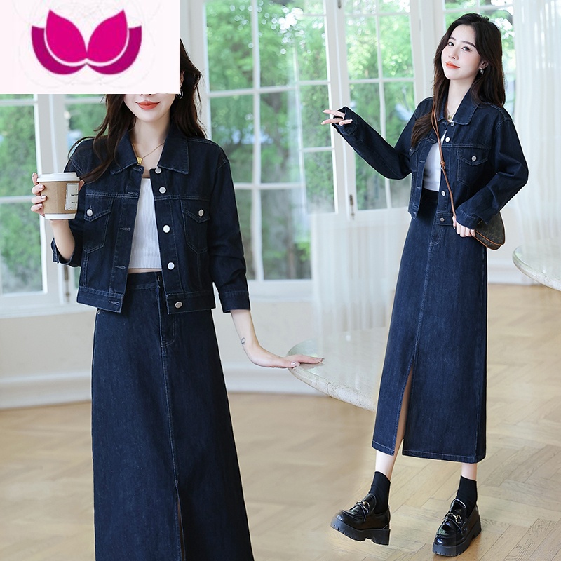 七斓牛仔套装女2023春季新款小个子今年流行漂亮显瘦半身裙子套潮 L 青蓝色