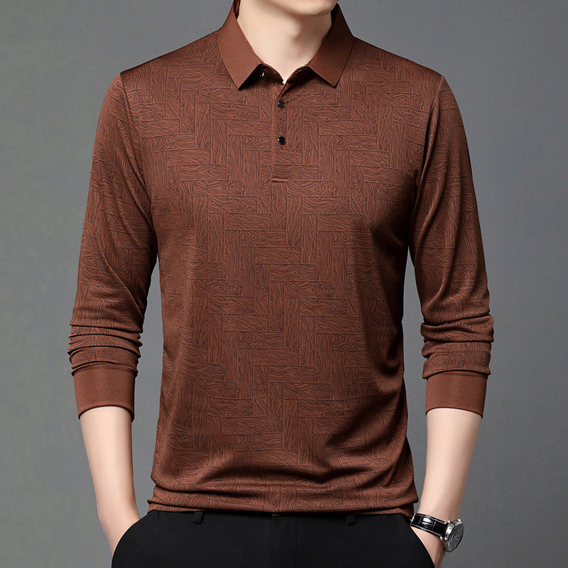 2025春季新款长袖男T恤轻熟休闲翻领提花热卖男士polo衫 4XL 棕色