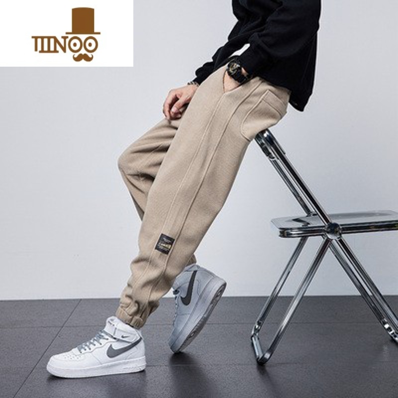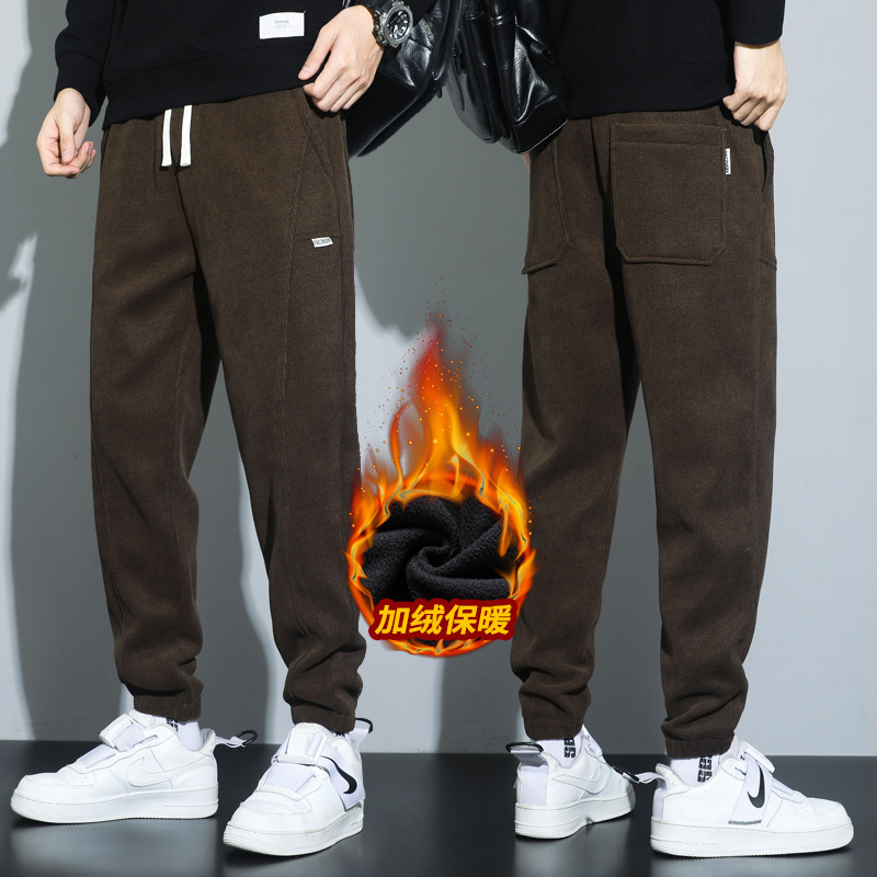 冬季裤子男百搭帅气潮流男裤内里加绒品质舒适束脚休闲九分裤男款 M(100斤) 856咖啡加绒