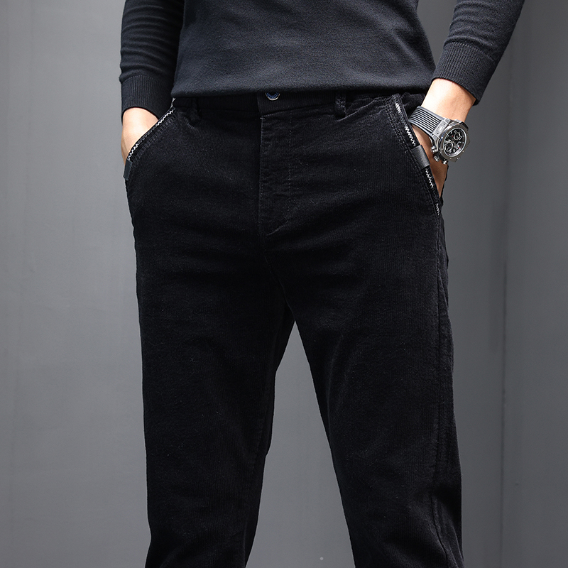 金盾(KIN DON)新款灯芯绒男裤韩版秋冬季厚款男士休闲裤长裤子青年百搭休闲裤男 金盾休闲裤U2059黑色修身版 28(2尺1)
