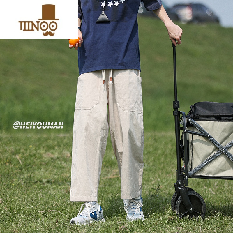 YANXU山系九分工装裤男夏季薄款日系cityboy宽松直筒阔腿户外休闲裤子 XL130160斤可穿 杏色