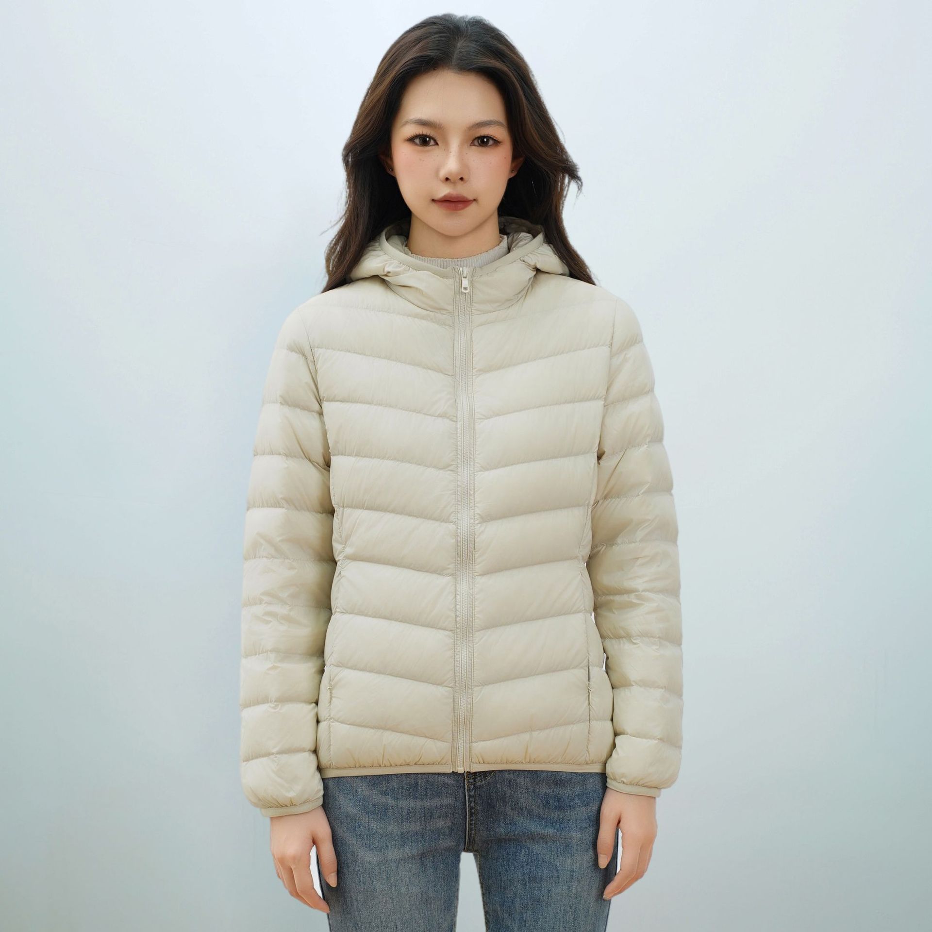 女装秋冬新款新国标90绒轻薄羽绒服女款女式带帽简约外套 2XL 米白