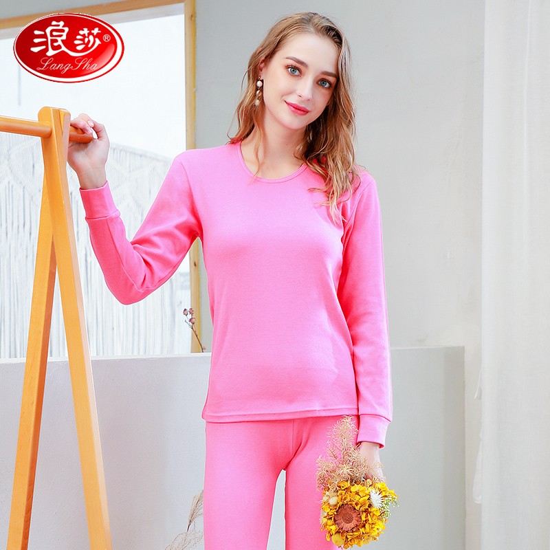 浪莎秋衣秋裤男纯棉秋冬薄款保暖内衣女套装情侣棉毛衫基础打底衫 女款-洋红色 160
