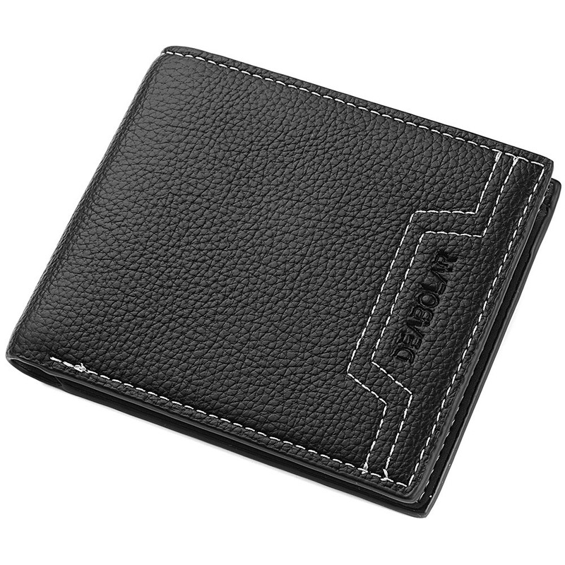 Ceba多功能钱包男士短款钱夹韩版荔枝纹青年皮夹子男款wallet me 黑色