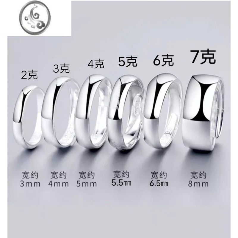 JiMi999银银戒指光面开口可调节男女情侣对戒素圈个性简约定制刻素 999足银面宽5毫米