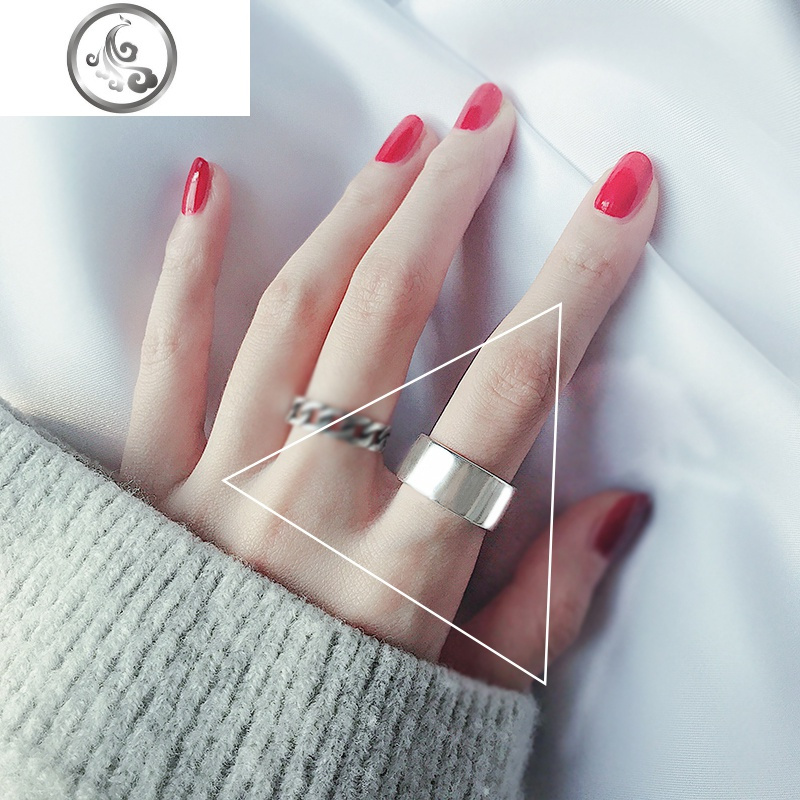 纯银戒指女日韩国潮人学生简约创意开口复古做旧大宽面链条食指戒_4 多层麻花一个