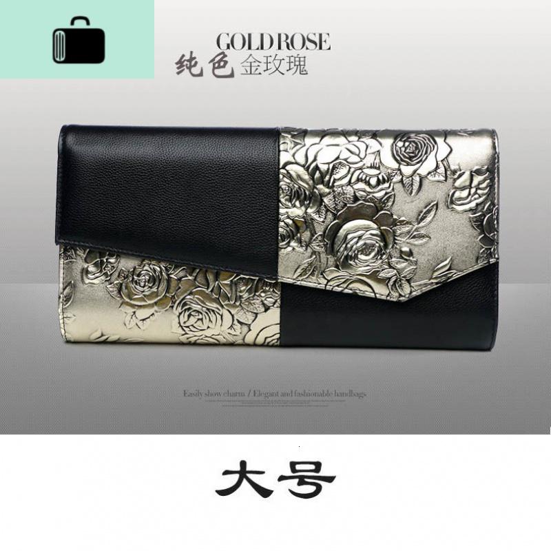 手包女士手拿包女新款手抓包大容量夹包宴会手拎包真皮头层牛皮NEWLAKE_191 纯色金玫瑰(大号)
