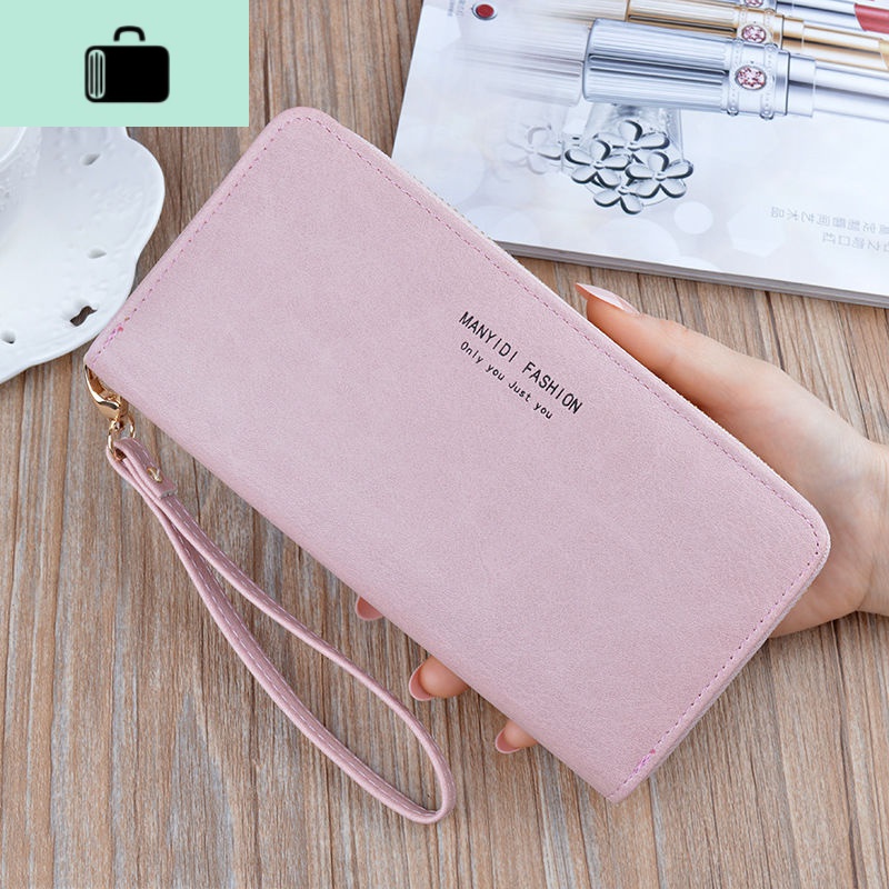 欧美钱包女中长款百搭拉链手机零线包女士迷你手拿包外出便携小包NEWLAKE 粉红色
