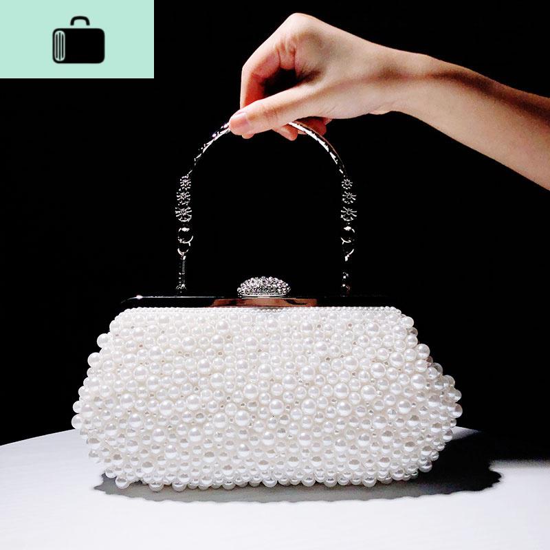 2019新款晚宴包宴会名媛手拿包晚礼服旗袍搭配珍珠包包女小手提包NEWLAKE_179 纯白色