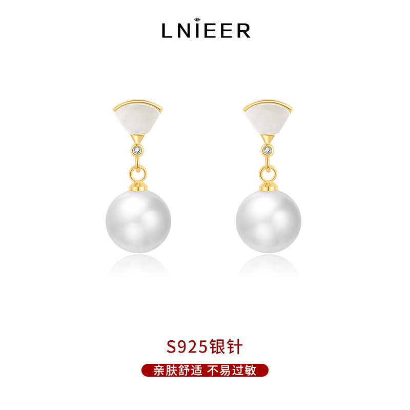 S925银针小裙摆珍珠耳环百搭气质轻奢耳坠珍珠吊坠高级感耳饰银 贝母珍珠耳环S925银针