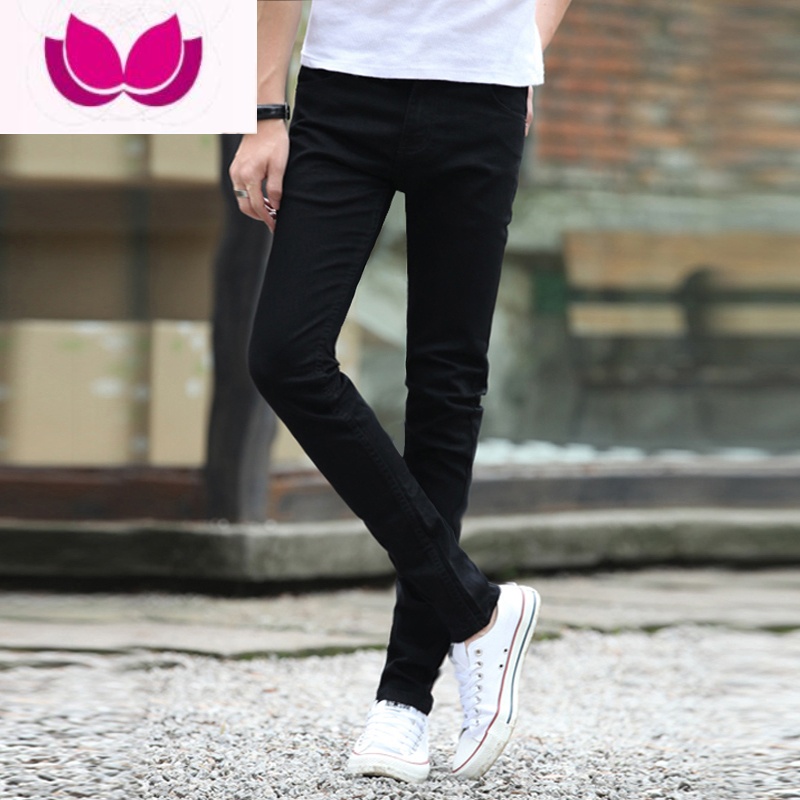 七斓青少年简约牛仔裤男款显瘦修身小脚裤2023春季潮流休闲弹性长裤子 33 黑色纯黑裤