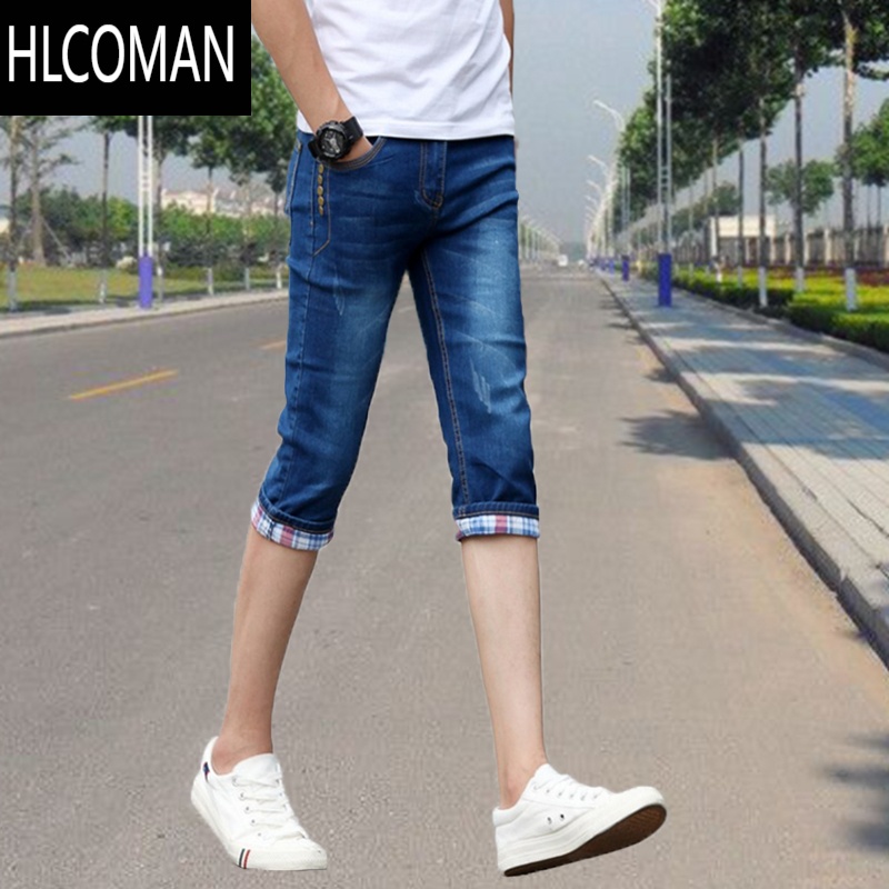 HLCOMAN夏季弹力七分裤男士薄款牛仔短裤青少年韩版潮男装百搭7分中裤青 31 五丁七分裤