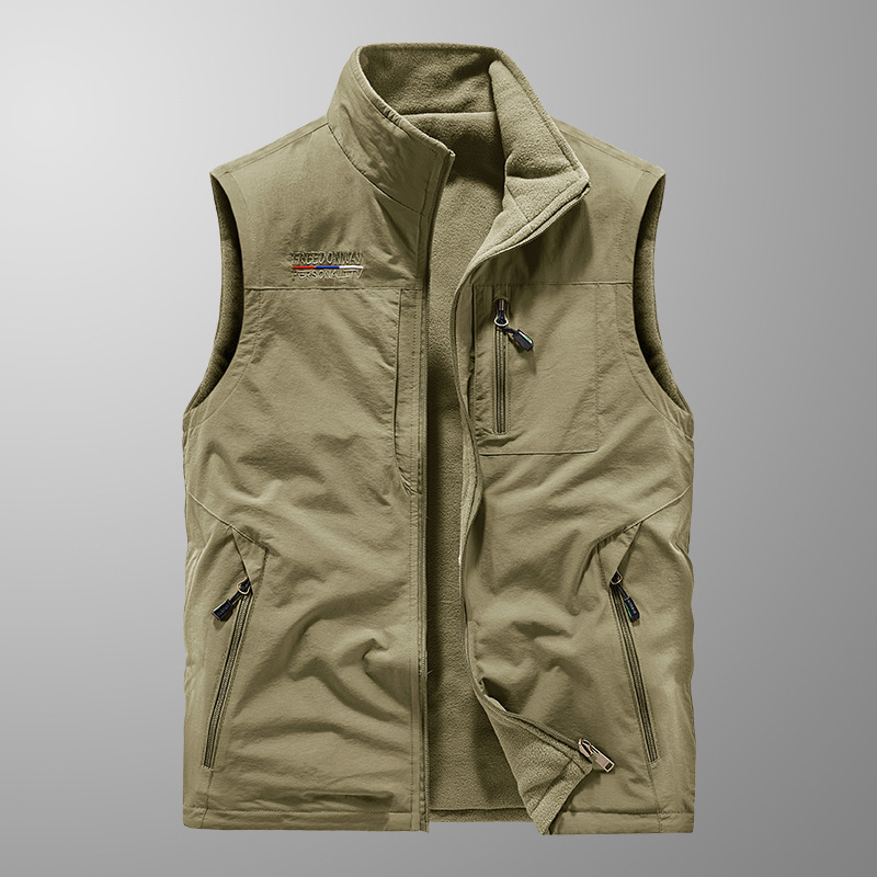 JPDUN背心秋冬加绒加厚男中老年户外运动马甲速干多口袋两面穿保暖坎肩_907 4XL 卡其色加绒