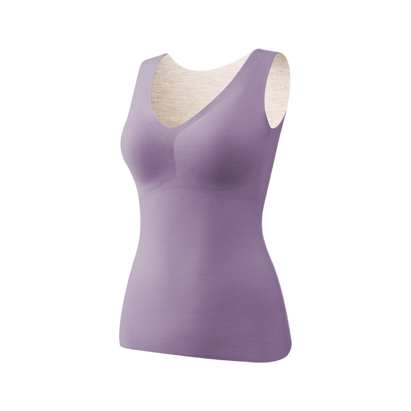 【羊绒蚕丝】秋冬季保暖背心女发热一体式固定罩杯可外穿打底马甲 XXL【130-145】 紫色