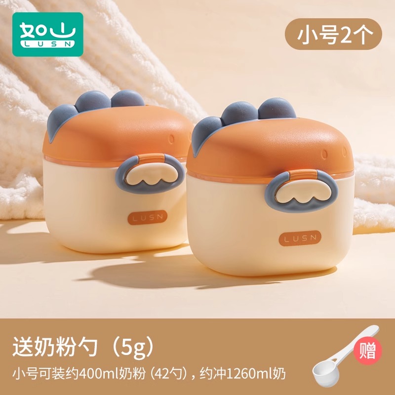 如山婴儿奶粉盒便携式外出辅食米粉盒子密封罐防潮储存罐分格分装 小恐龙:橙*2个【可装42勺,冲1260ml奶】